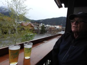 Absolutely chucked it down on the way to Banff but let up a little when we arrived. Couldn’t get into the room so went to our favourite coffee shop and ended up chatting to a guy for an hour. Then browsed some shops before a stop at our favourite bar. The rain had eased up so we could sit on the balcony.