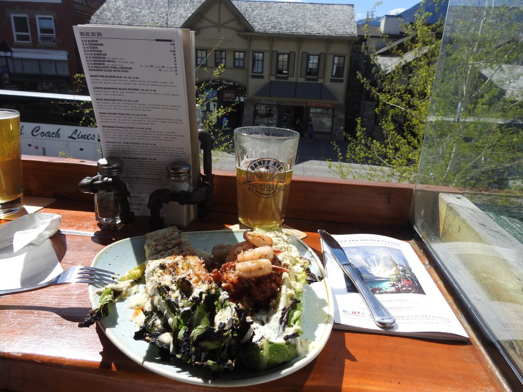 At least we deserved the Kiwi Kolsch and food we had when we returned to Banff. I had Caesar salad with prawns and Paul had pan fried Brussels sprout salad. Both a little different but delicious.