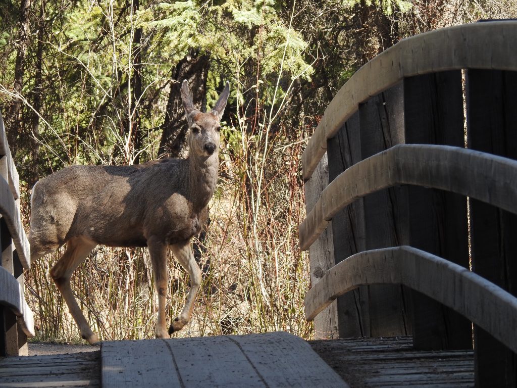 Another glorious day and, after our usual breakfast at Evelyn’s we drove up the Bow River Parkway to Lake Louise, catching sight of some Mule Deer on the way.