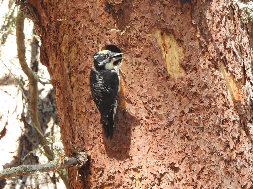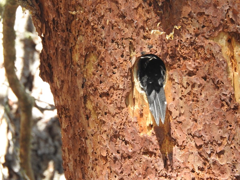 This little downy woodpecker was so cute drilling out his nest and throwing away the shavings