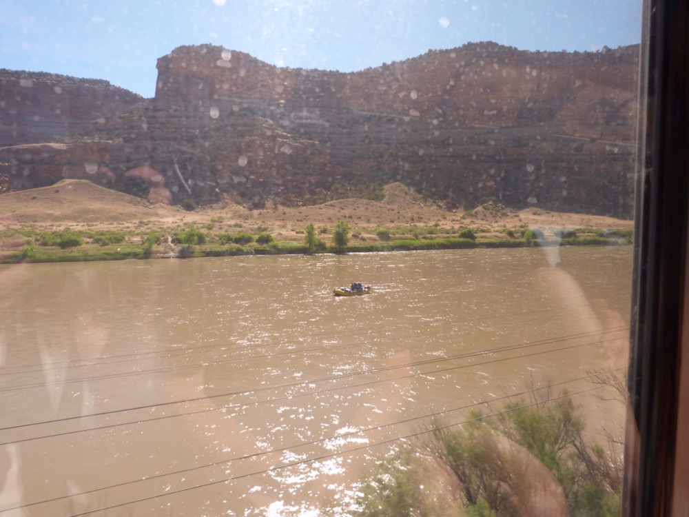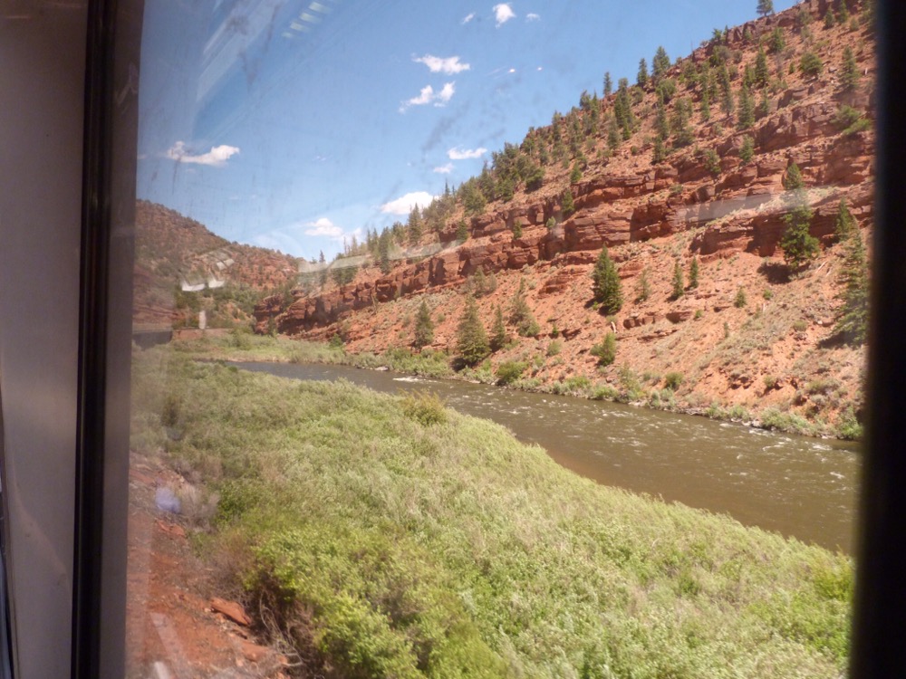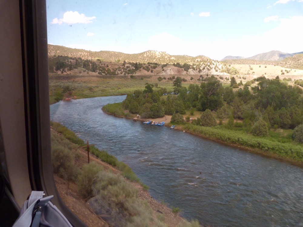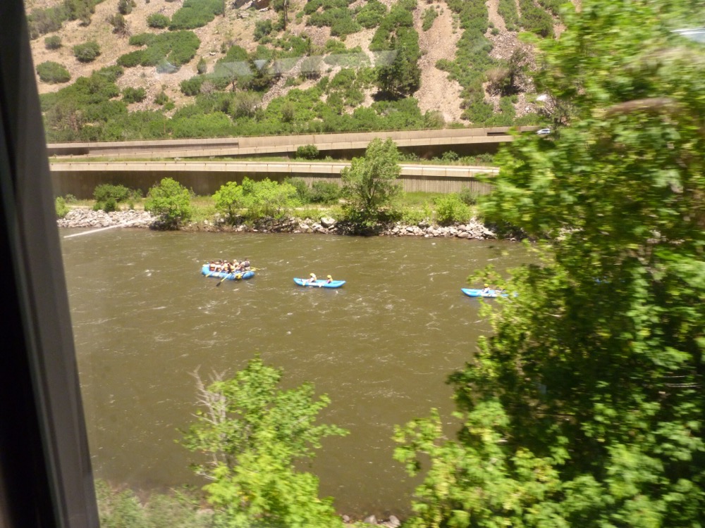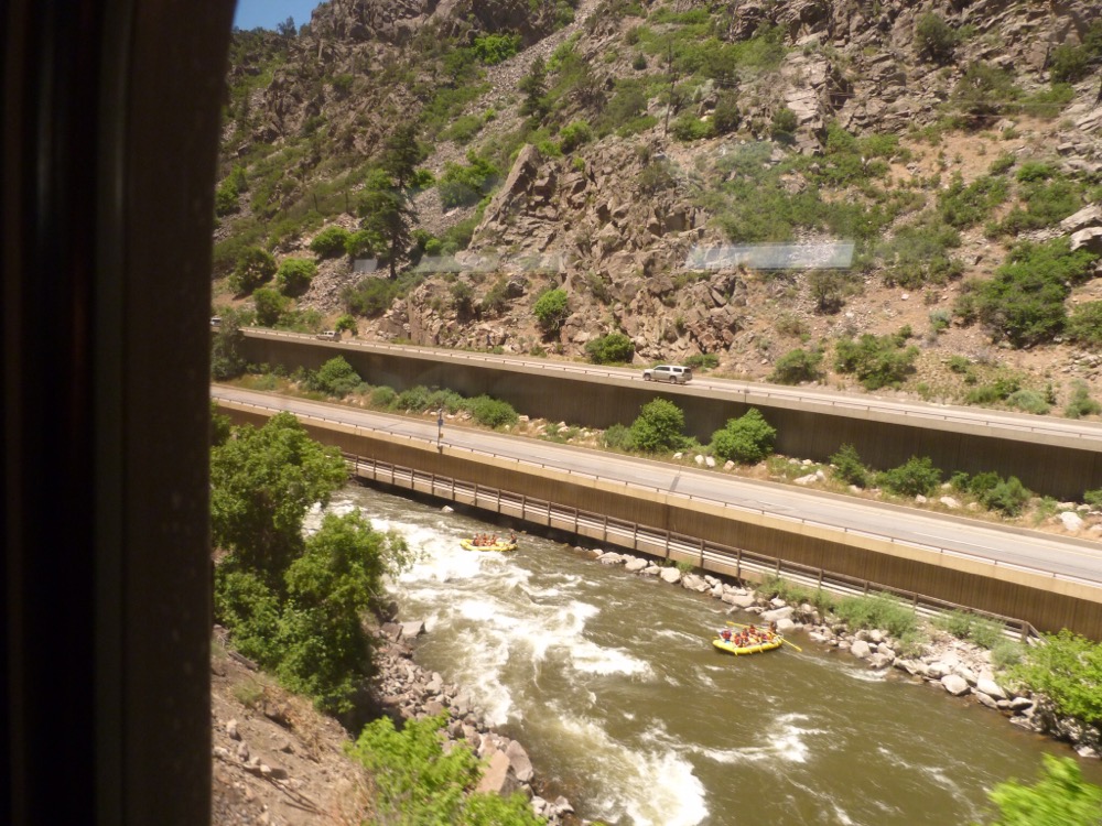 We started the journey along the coast before heading inland at Sacramento. From there on it got to be more scrub where I saw plent of hares running around. During the night we stopped in Salt Lake City (I didn’t wake) and in the morning it was more barren and Paul had seen prairie dogs and antelopes. That day the scenery was incredible with towering mountains of rock, Eagles and then reaching an altitude of 10,000 ft above sea level and beginning to descend through lots of tunnels and following the Colorado River where there must of been hundreds of people rafting. In some places it looked just like The River Wild! Eventually we saw Denver hundreds of feet below.