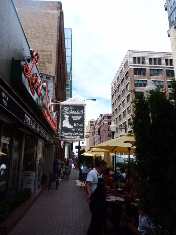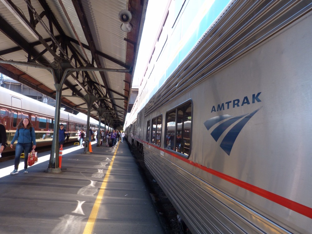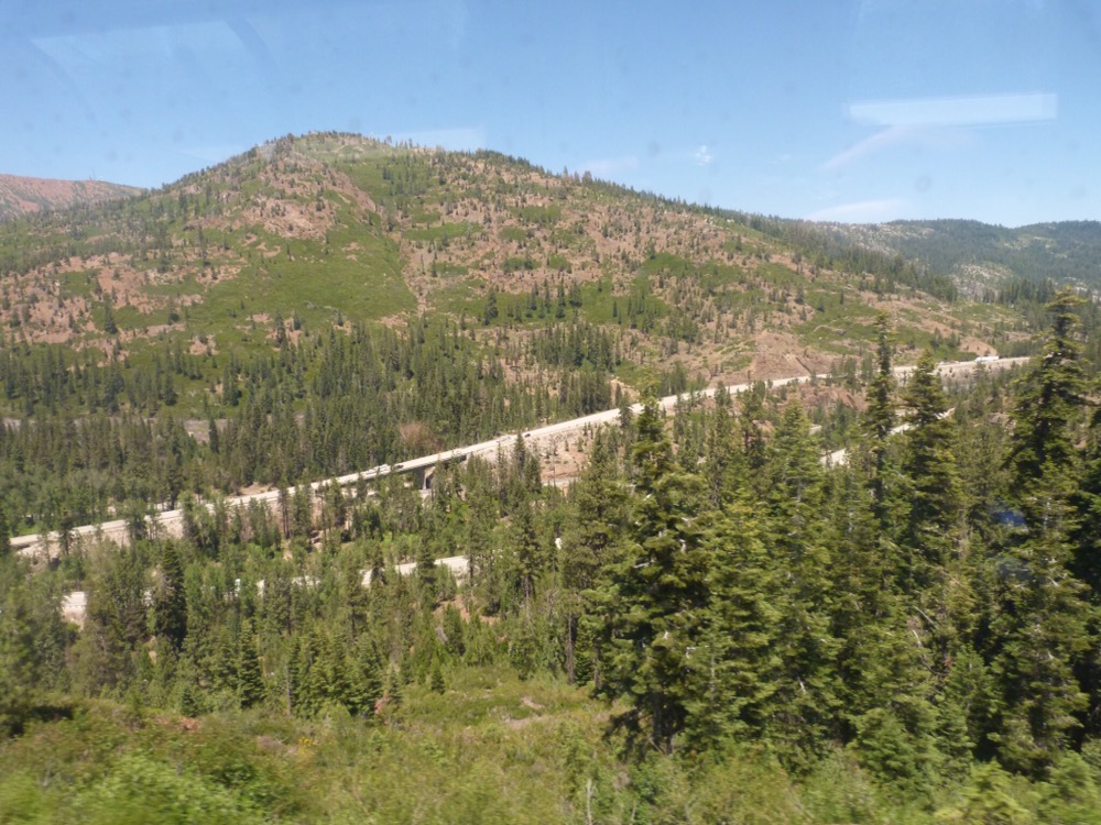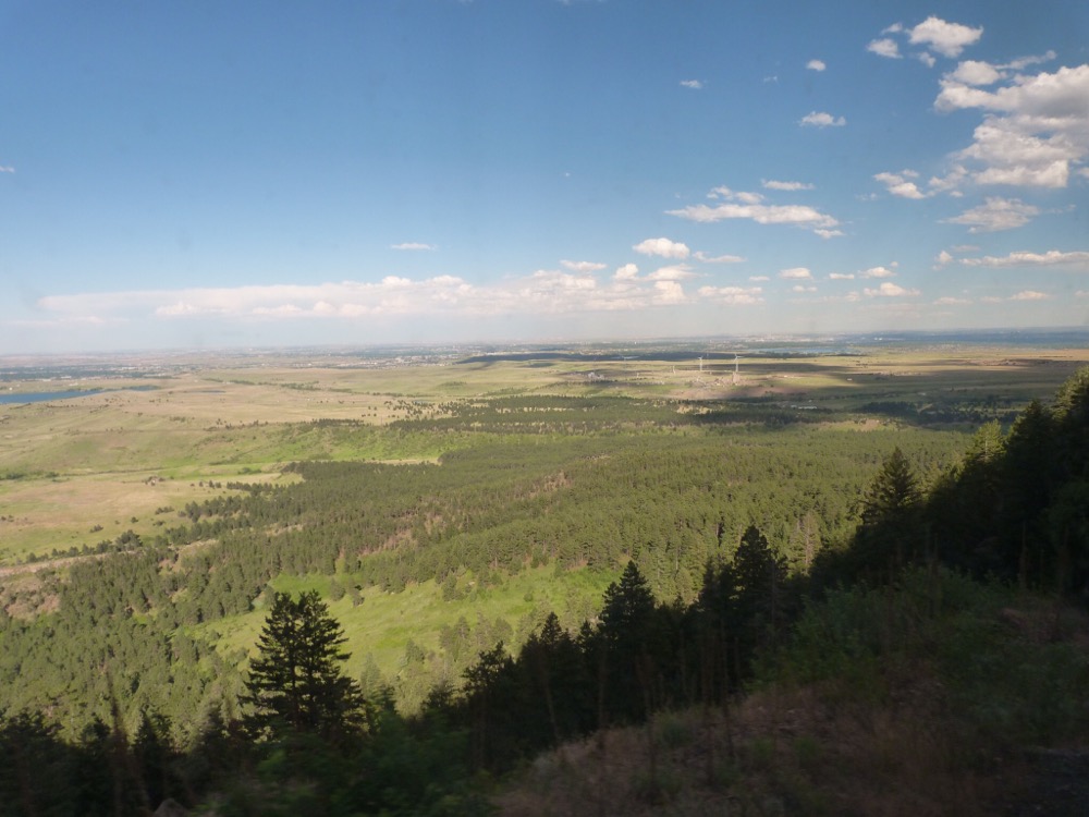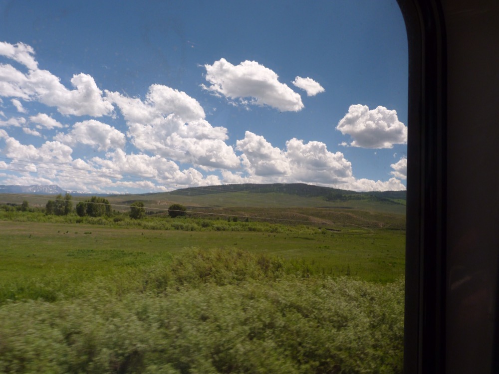 We started the journey along the coast before heading inland at Sacramento. From there on it got to be more scrub where I saw plent of hares running around. During the night we stopped in Salt Lake City (I didn’t wake) and in the morning it was more barren and Paul had seen prairie dogs and antelopes. That day the scenery was incredible with towering mountains of rock, Eagles and then reaching an altitude of 10,000 ft above sea level and beginning to descend through lots of tunnels and following the Colorado River where there must of been hundreds of people rafting. In some places it looked just like The River Wild! Eventually we saw Denver hundreds of feet below.