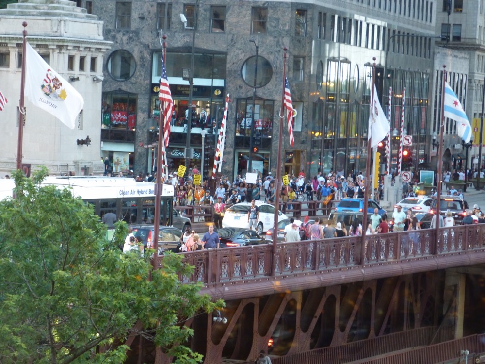We eventually arrived in Chicago three hours late, had to wait another half an hour for our luggage and then got a taxi to our very swish hotel which is on South Michigan Avenue and just across from a Grant Park. Now had a snack and are off to bed – a very welcome king sized bed. Will post pics tomorrow as the iPad needs charging.
