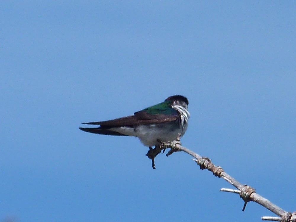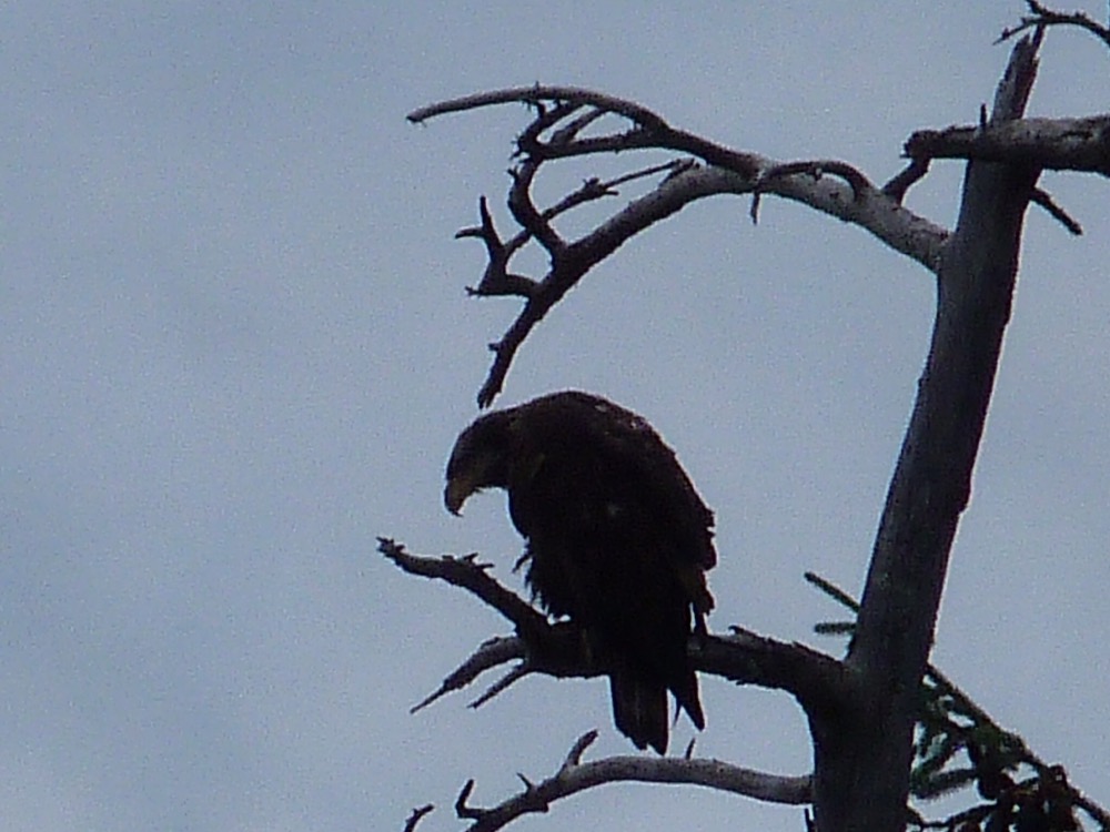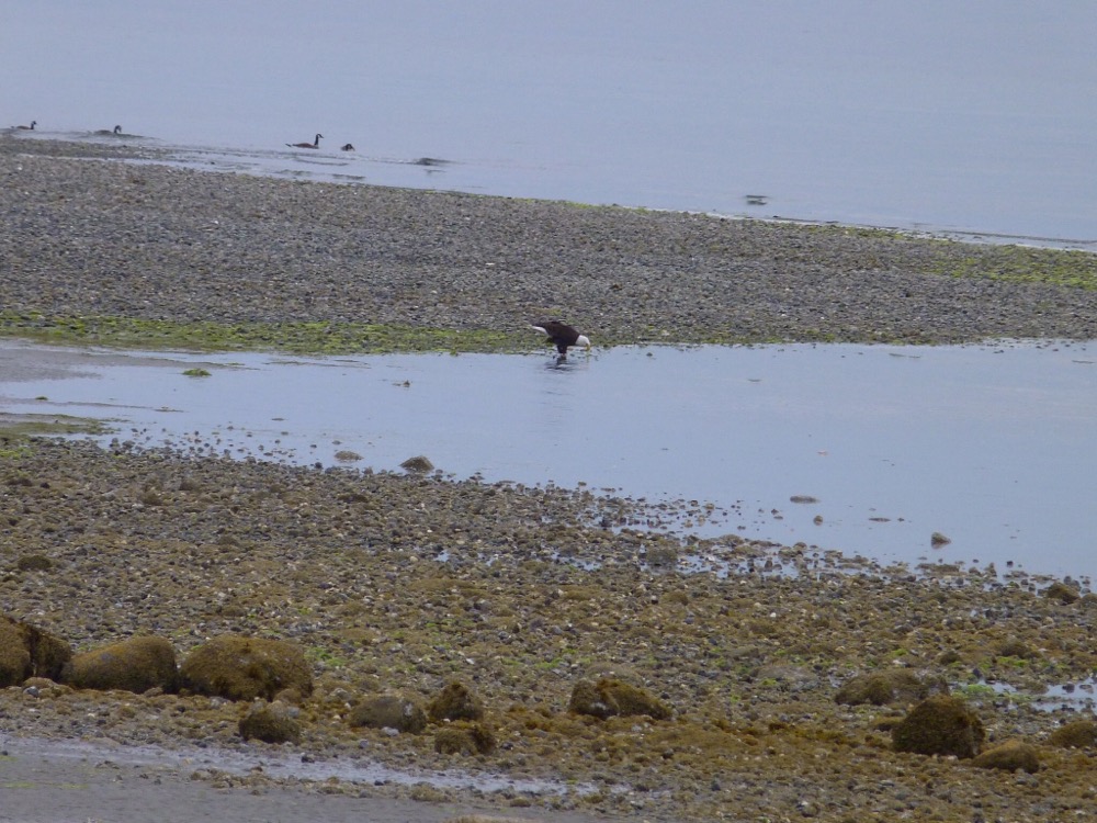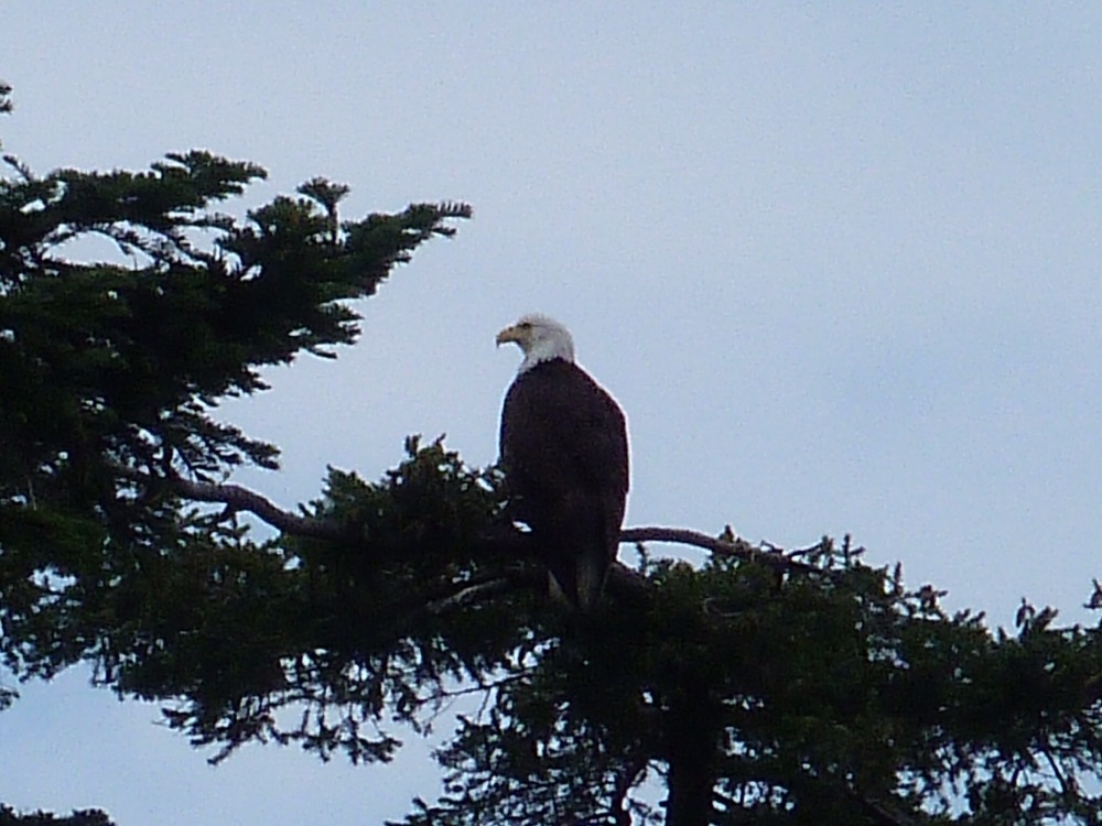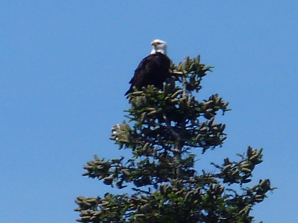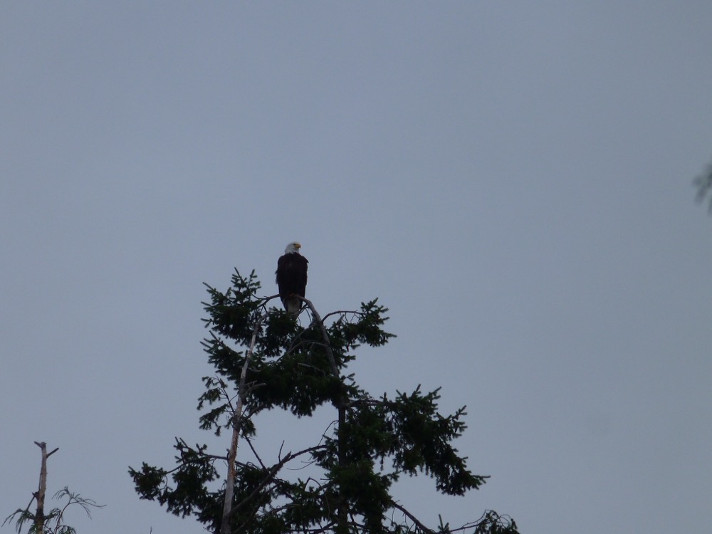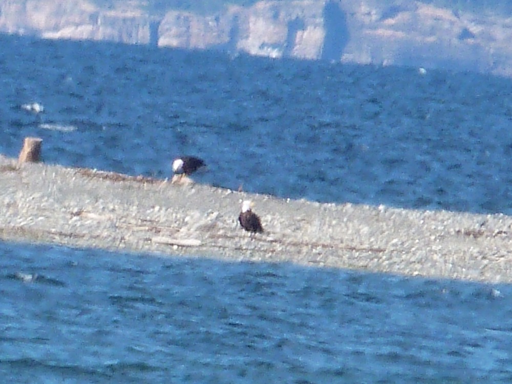 What a wonderful day. The weather was perfect and we did one of our favourite walks in Port Alberni and then had lunch in the Clam Bucket. Decided to pop in to see the Eagles before going home and I’m so glad we did eye put on a show for us followed by another put on by Mummy Merganser and her ducklings. Didn’t think the Eagles were going to do anything but mum eventually appeared, junior popped his head up and then daddy brought something to eat. Then he kept coming back with more! Incredible. The mum then spent a while feeding the baby – although he looks as big as his parents and certainly big enough to feed himself! Mum must have then sent dad out for new bedding as he then appeared with a tree branch and spent a while repairing part of the nest.