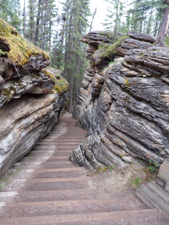 Then up to Maligne Lake where we could take the boat to Spirit first time the lake hasn’t been iced over while we’ve been here. Absolutely breathtaking. Then back to Jasper via a walk down Maligne Canyon – not for the faint hearted. On the way back to the hotel saw a black bear just moseying along by the side of the road!