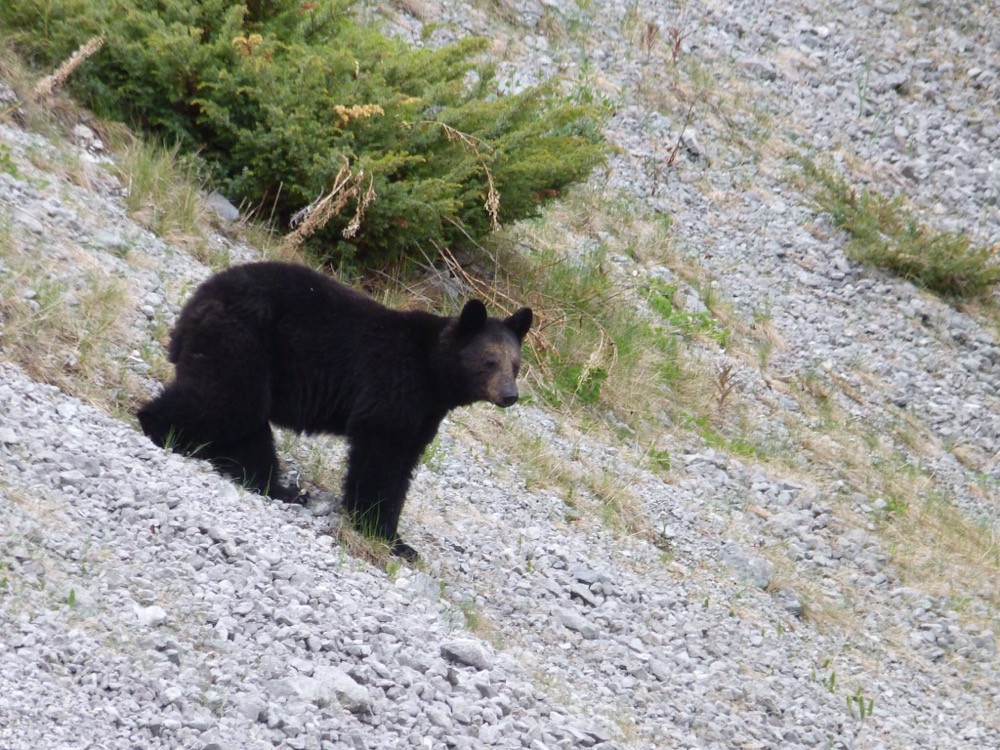 Lovely drive across to our next stop – even saw a couple of bears (one carrying a huge fish in it’s mouth). I have to admit to something here that you won’t often here me say – I was wrong! Not just once but twice! The minute I said I wouldn’t expect a bear to be about in that sort of countryside w saw the first bear and, then as soon as I said the bears in the Rockies seem to eat just berries and vegetation we saw the bear with the fish!