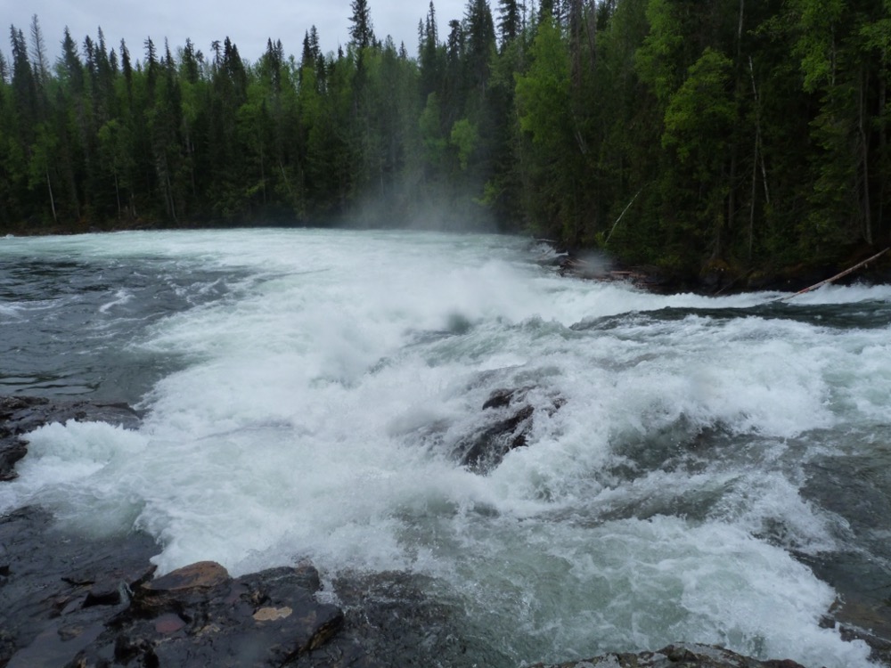 Drove up to Clearwater Lake stopping off at Baileys Chute on the way. At least the rain means the rivers look spectacular. Had a cup of tea in the cafe and then decided to go up to see Osprey Lookout. Very steep but lovely view from the top. Then made the mistake of following a sign to Chain Meadows – be lovely to see an alpine meadows with lovely flowers we thought! 6 hours later and a lot of climbing over fallen trees and going up and down through thick forest we finally got back to the car – and there wasn’t sight or sound of any meadows! We were absolutely shattered and didn’t bother with dinner. In bed by 8.30pm. Did see a bear and a ruffed grouse though.
