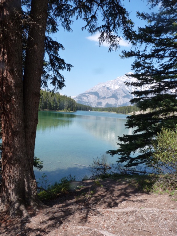Once again started the day with a coffee and a pastry in town (Evelyn’s – definitely the best pastries!). Then needed to start walking them off so walked along Lake Minnewanke and to the bridge over the gorge. Apparently this is the bridge that Marilyn Monroe shared a steamy kiss with her co-star in a 1954 film. Then a short drive to JohnsonLake where we walked all around it. Wonderful scenery set off well by the brilliant blue sky. After all that walking we decided we needed some r&r and headed for Banff Hot Springs via the Hoodoos (don’t ask). The pool was busy but it was bliss to just sit in 40 degree water surrounded by snow topped mountains.