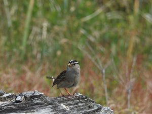 However, this White crowned sparrow had a  mouthful of some thing delicious for her babies.