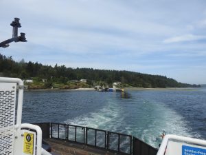 Up early as an hour and a half drive to Mill Bay to pick up the ferry. Need to be early as it only takes around 16 cars and isn’t very frequent. Caught the 10.25am . Really overcast sitting out on deck and the wind was cold. Nice scenery though.