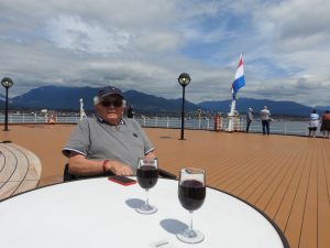 Weather very misty but dry so far thank goodness. Time for a coffee and relax in the Crow’s Nest and watch the scenery go by.