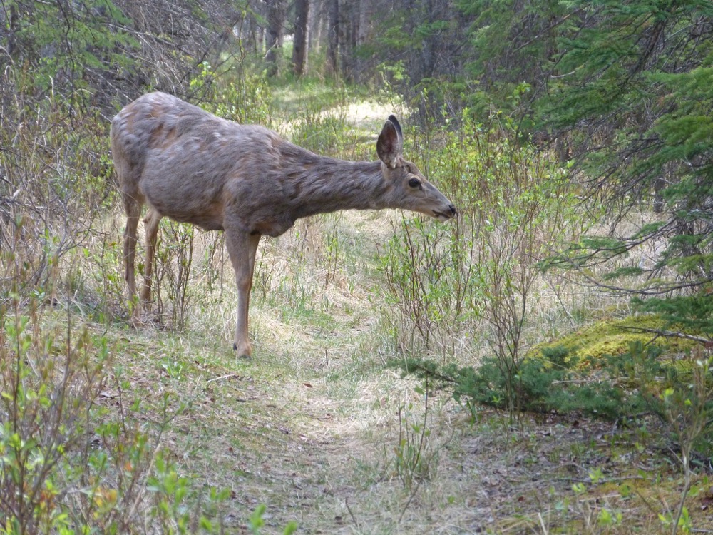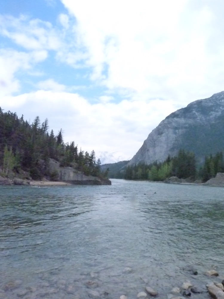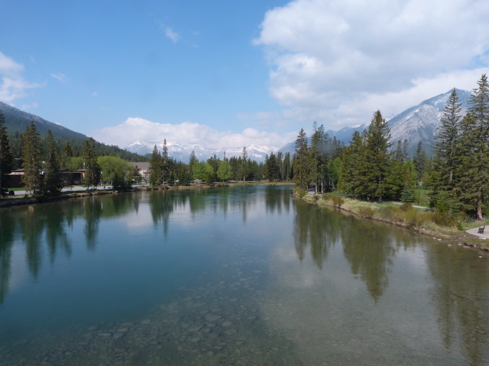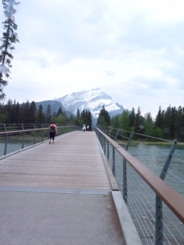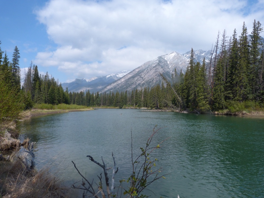 After a good night’s sleep felt much better and ready to face the world. Started the day with coffee and a pastry sitting outside a coffee shop on Banff Ave – bliss. Then went on a three and a half hour walk along the Bow River. Didn’t see a tremendous amount of wildlife but we hopefully had a taste of things to come. After a quick cup of tea in our cabin drove out to Lake Minnewanke (no, it’s pronounced Minnewonka!) and went for a cruise around the lake. We’ve been here three times and this is the first time it hasn’t been frozen over. The crew were really enthusiastic and we saw a plastic replica of a grizzly paw. Apparently there is a grizzly that is often seen between the upper hot springs and Lake Louise – after seeing the size of that paw we definitely won’t be going on that path!