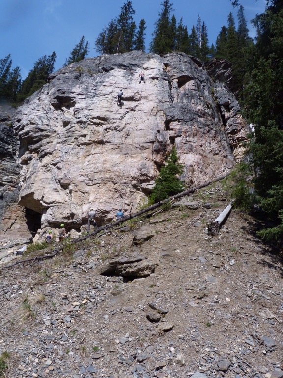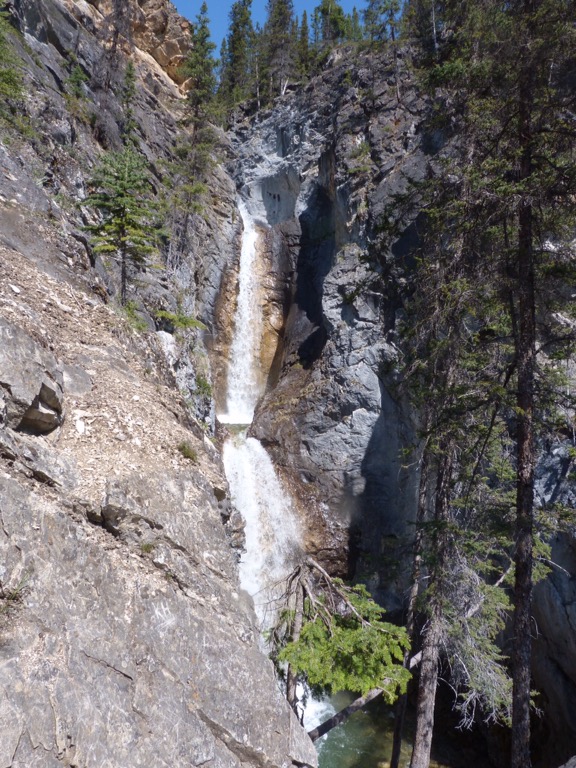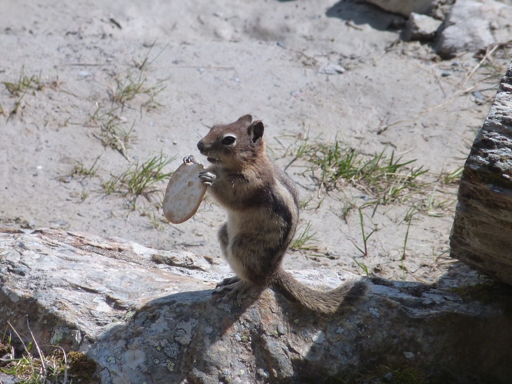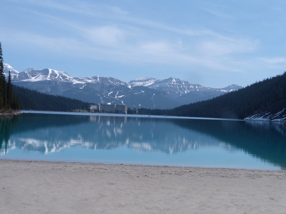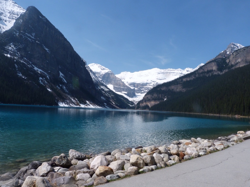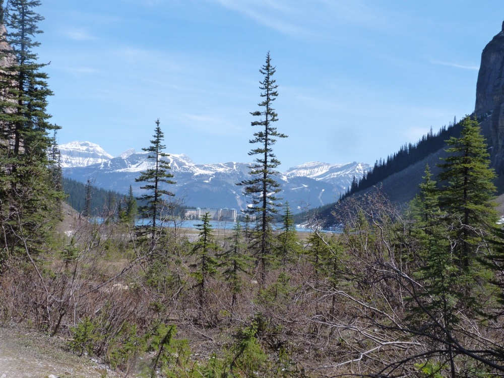 After our normal (and very healthy breakfast) we took the 1a to Lake Louise. Maligne Lake still not open. We’ve been here 3 times and it’s always been closed – thought it might be open this year as the weather had been so glorious. Still we did our usual walk to the end of Lake Louise and actually managed to go further than we had before but the path got more slippy on the ice as we went further up. It did mean that Paul got to show the youngsters how to do the climbing – he just can’t help himself, he just has to join in!